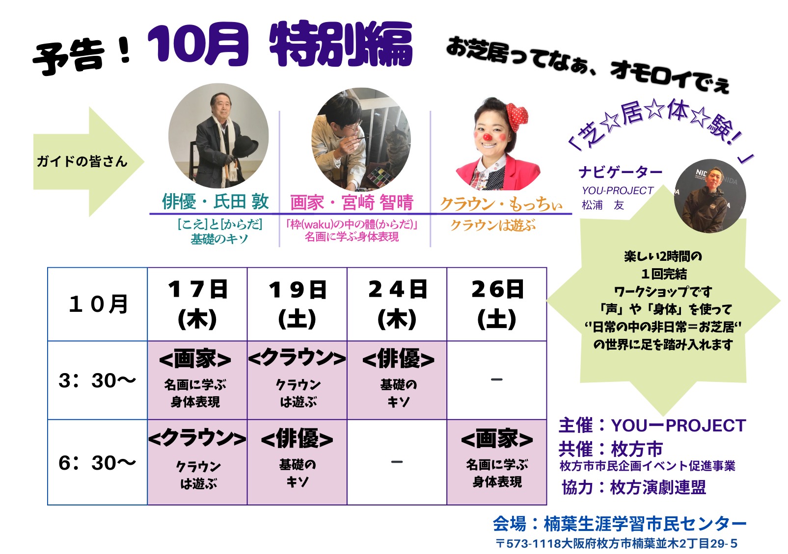 劇団冬芽舎〈休止中〉代表・俳優 。劇団京都小劇場を振り出しに、劇団カオス(京都)から冬芽舎へ。冬芽舎俳優教室1〜16期まで指導し、放送芸術学院・大阪アニメーションスクール専門学校(1995?2016)などで後進の育成にも尽力。YOU-PROJECTではシェイクスピア・チェーホフ・座付作家クスキユウの作品に出演。